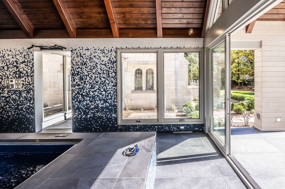 Writer Meg Fox | Photographer Aislinn Weidele | Location Princeton, NJ | Architecture & Design Mills + Schnoering Architects LLCMerging tradition with a modern indoor pool experience in Princeton
